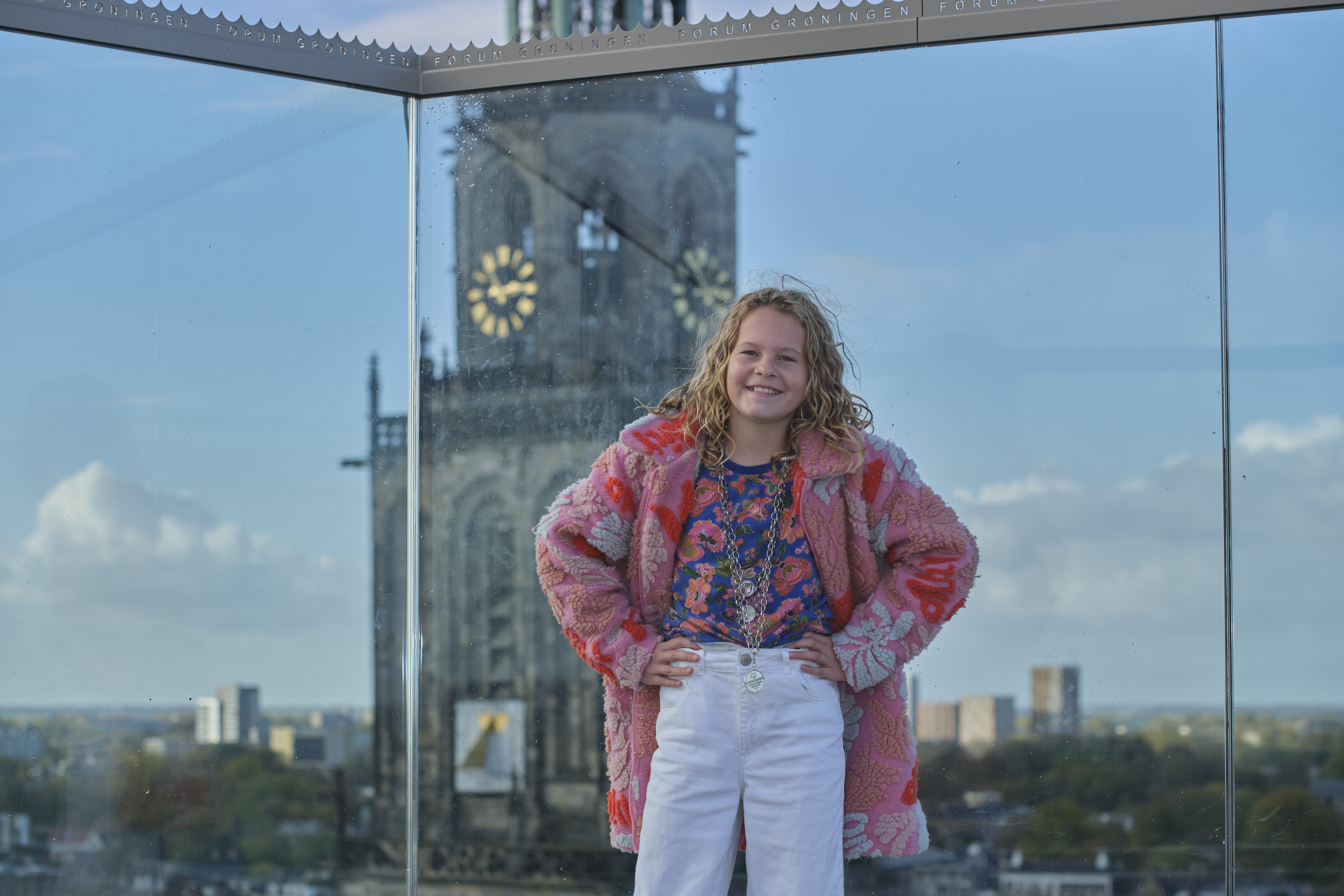 Stralend poseert Biene met haar burgemeestersketting voor de fotograaf. Deze ketting draagt ze als ze op pad gaat voor officiële gelegenheden. “Toen ik hoorde dat ik kinderburgemeester was geworden was ik helemaal blij!”, vertelt ze enthousiast. Waar ze het meeste naar uitkijkt? “Dat ik Sinterklaas namens alle kinderen in Groningen welkom mag heten.”