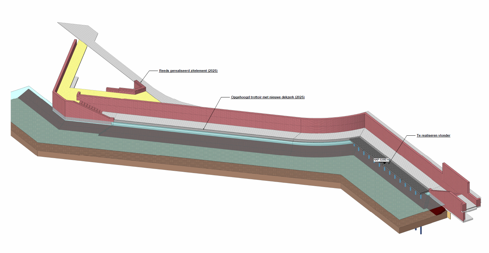 Het grootste gedeelte van de werkzaamheden is uitgevoerd. Alleen de vlonder en het wegdek moeten nog aangepakt worden.