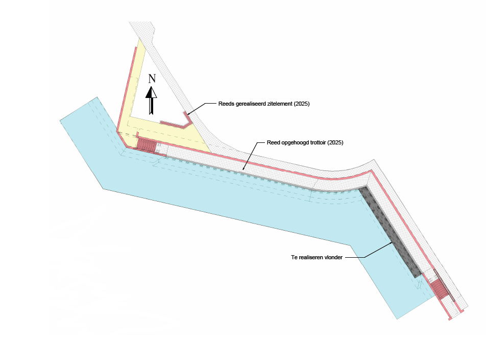 We konden de vlonder nog niet aanleggen omdat de vergunning was afgekeurd. Inmiddels hebben we het ontwerp aangepast en is de vergunning goedgekeurd. We starten 1 december 2025 met de vlonder aanleggen. We verwachten dat de vlonder in de week van 15 december 2025 klaar is.
